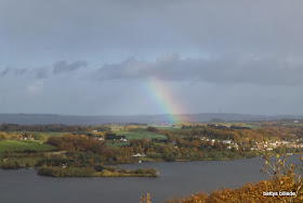 Der var de flotteste efterårsfarver incl. en lille stump regnbue, da vi stod på toppen.